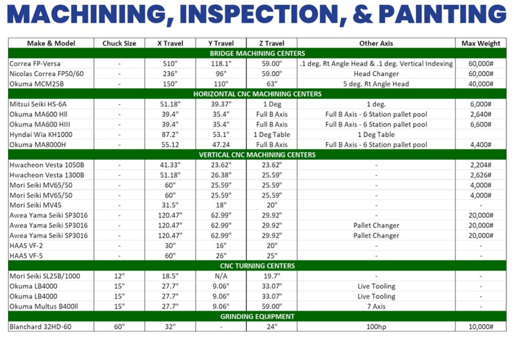 Our Meta Tec operations also feature one of the largest CMMs around and is equipped to measure the most complex large assemblies, to ensure optimal final inspection of the product prior to shipment.